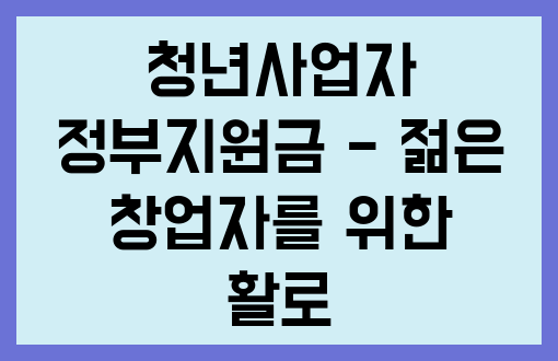 청년사업자 정부지원금은 창업할 준비가 된 젊은이들에게 매우 이익이 되는 정책입니다. 여러분이 꿈꾸는 사업을 시작하고 싶다면, 반드시 이 정부지원금에 대해 자세히 알아보시기 바랍니다.