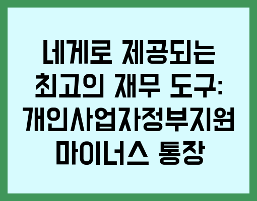안녕하세요! 저는 재무 상담 전문가로서 여러분에게 최고의 재무 상품을 안내해드리고 싶습니다. 오늘은 개인사업자를 위한 최고의 도구인 ‘개인사업자정부지원 마이너스 통장’에 대해 알려드리려고 합니다. 이 마이너스 통장은 개인사업자들에게 많은 혜택을 제공하는 최고의 선택입니다. 함께 자세히 살펴보겠습니다. 주요 정보 이름 개인사업자정부지원 마이너스 통장 제공 업체 정부 기관 이자율 0% 한도 개인사업자에 따라 다름 신청 자격 신규 개인사업자 및 …